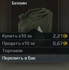 Как и любой другой ресурс в Кроссаут топливо можно купить или продать на рынке.